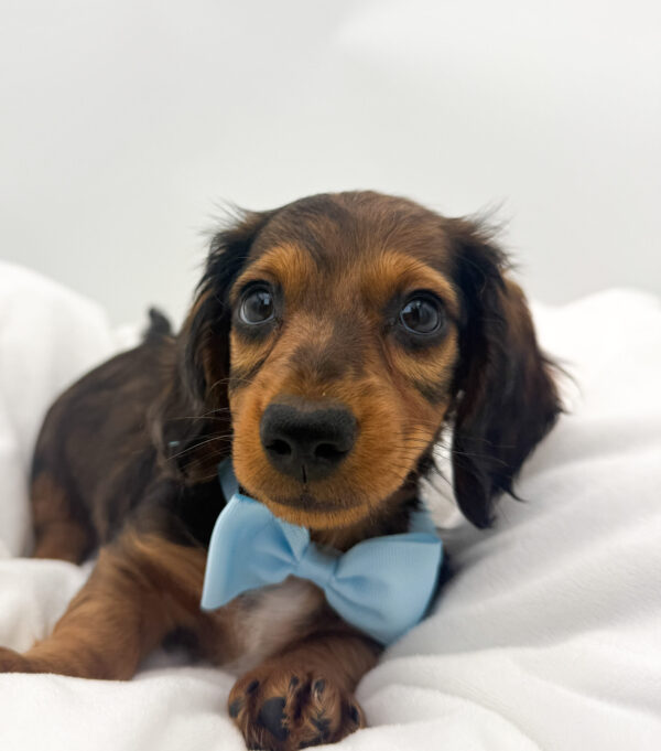 We raise our Dachshund puppies in nurturing environments where they receive daily socialization and early enrichment. This ensures they grow into confident, loving companions. Whether you prefer a smooth, long-haired, or wire-haired coat—or a standard or miniature size—we help you find the Dachshund that best fits your family’s lifestyle.